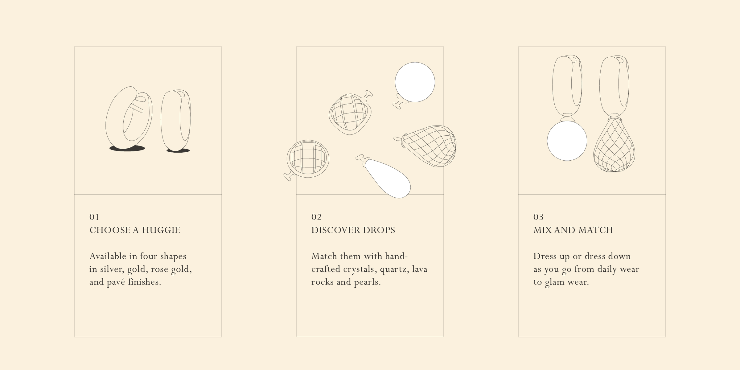 Available in two sizes and crafted in Silver, Gold, and Rose Gold, these versatile drops can be paired with any of our Pendants or Huggies.